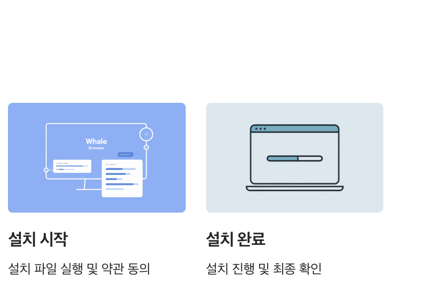 - 설치가 완료되면 웨일 브라우저가 자동으로 실행되며 초기 설정 화면으로 이동합니다.