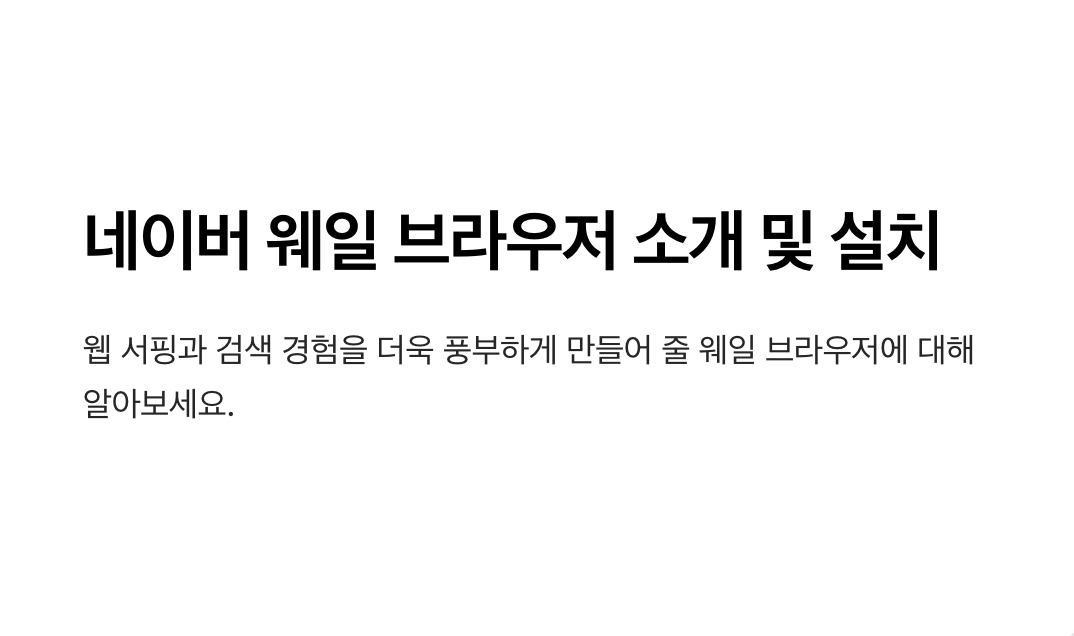 | 1. 네이버 웨일 브라우저 공식 다운로드 페이지 | 네이버 웨일 브라우저를 PC와 모바일에 설치할 수 있는 공식 다운로드 페이지입니다. 최신 버전을 제공하며, 운영체제별 다운로드 옵션이 안내되어 있습니다. |