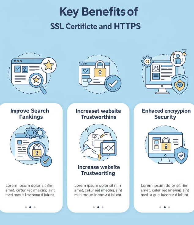 웹사이트의 보안과 신뢰성을 확보하기 위해서는 도메인 구매와 SSL 인증서 설치가 필수적입니다. 도메인은 웹사이트의 주소 역할을 하며, SSL 인증서는 데이터 전송 시 암호화를 통해 사용자 정보를 보호하는 중요한 보안 요소입니다.