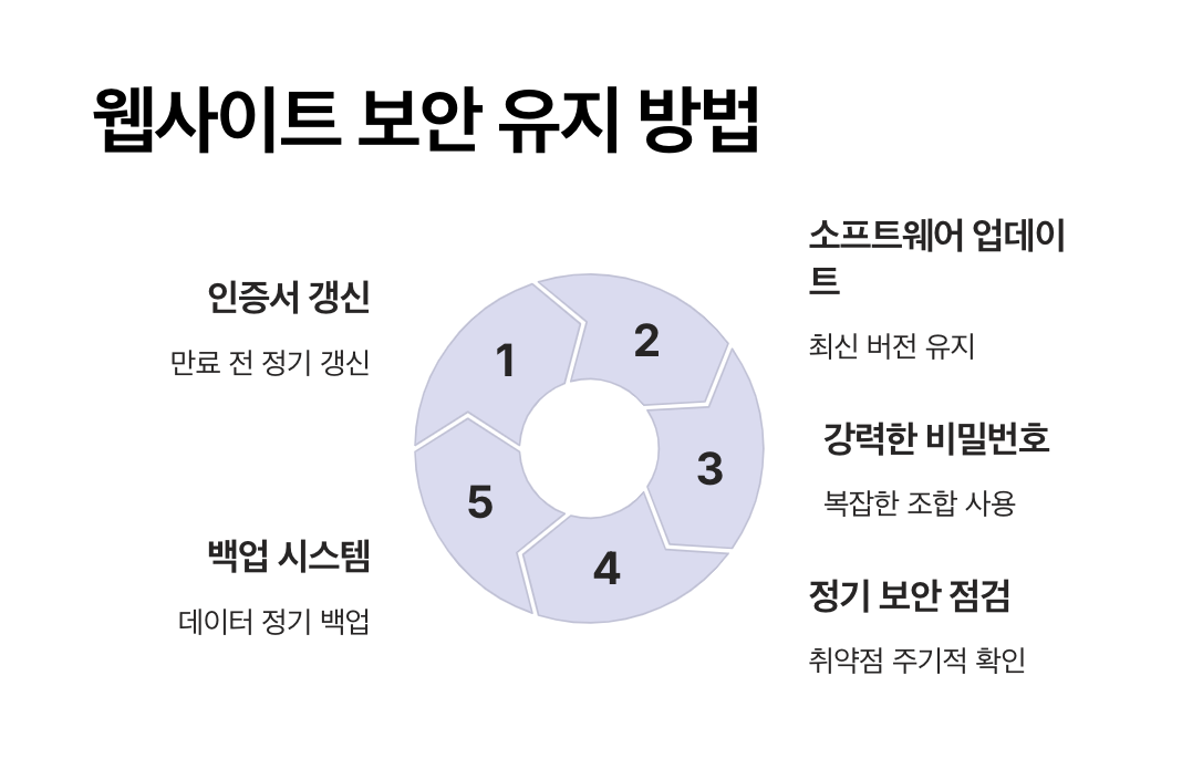 - 주기적인 보안 점검: 사이트의 보안 패치를 최신 상태로 유지