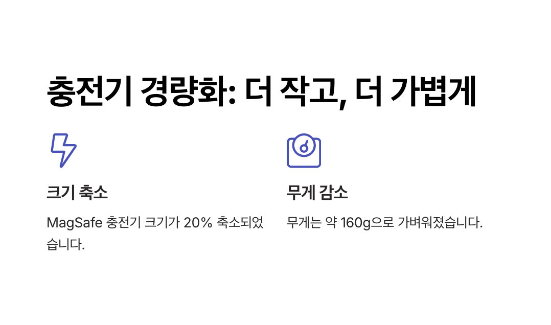 - 크기 감소: 기존 충전기 대비 약 20% 더 작아짐.