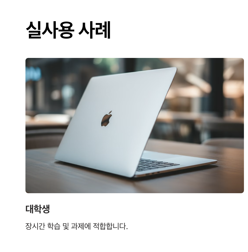 - 외부 작업 환경: 카페, 도서관 등 전원 접근이 제한된 환경에서도 효율적인 사용.