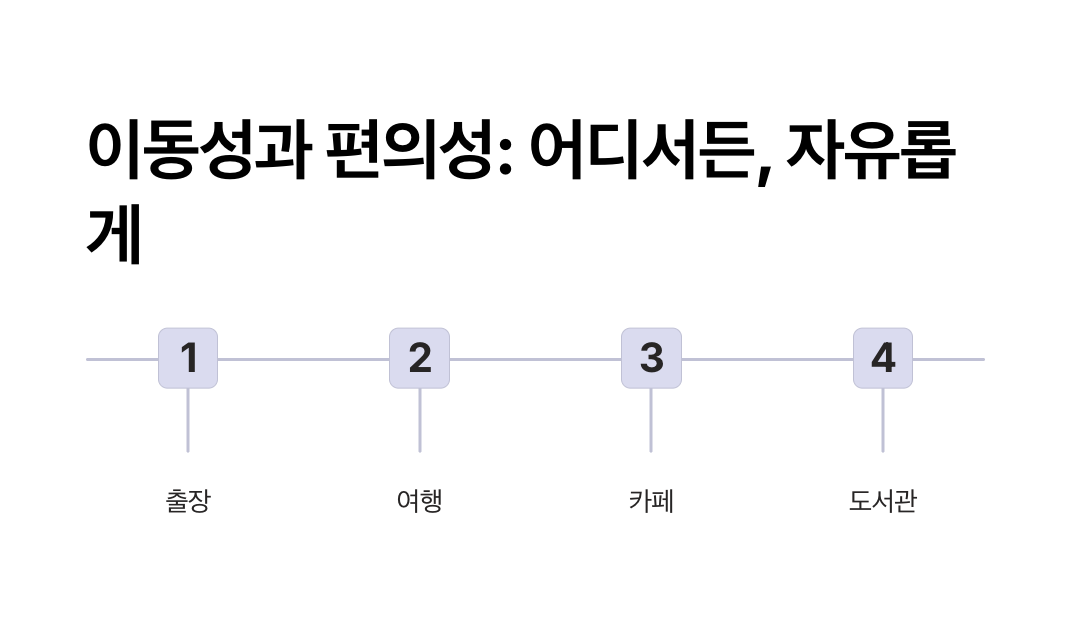 - 디지털 노마드 B씨: "여행 가방에 넣어도 공간 차지가 크지 않아 비행기 안에서도 작업이 편리해졌습니다."