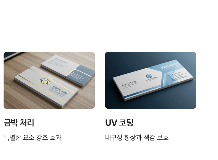 - 금박/은박 인쇄: 명함의 고급스러운 느낌 강조