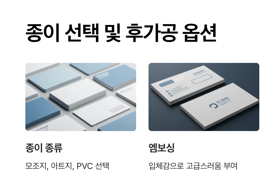 3. 명함 인쇄 시 종이 선택, 코팅 방식, 후가공 옵션 비교