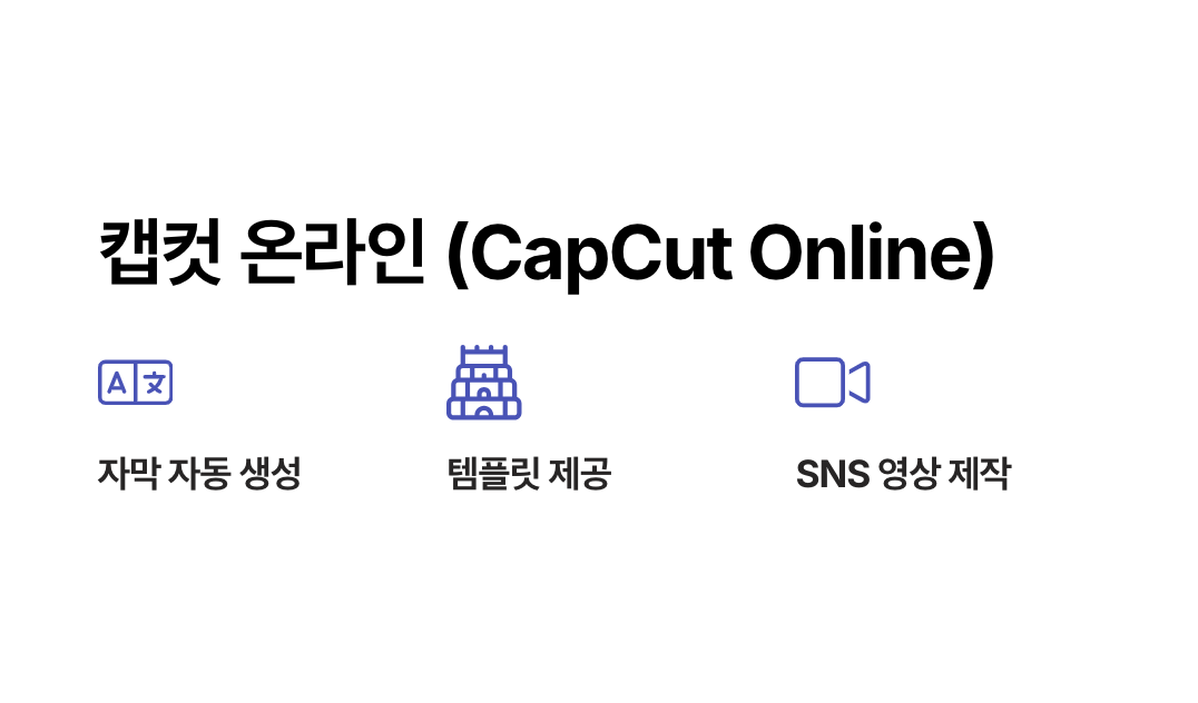 - 캡컷 온라인은 SNS용 짧은 동영상 제작에 최적화된 무료 편집 도구로, 틱톡, 인스타그램 릴스, 유튜브 쇼츠와 같은 콘텐츠 제작에 강점을 보입니다.