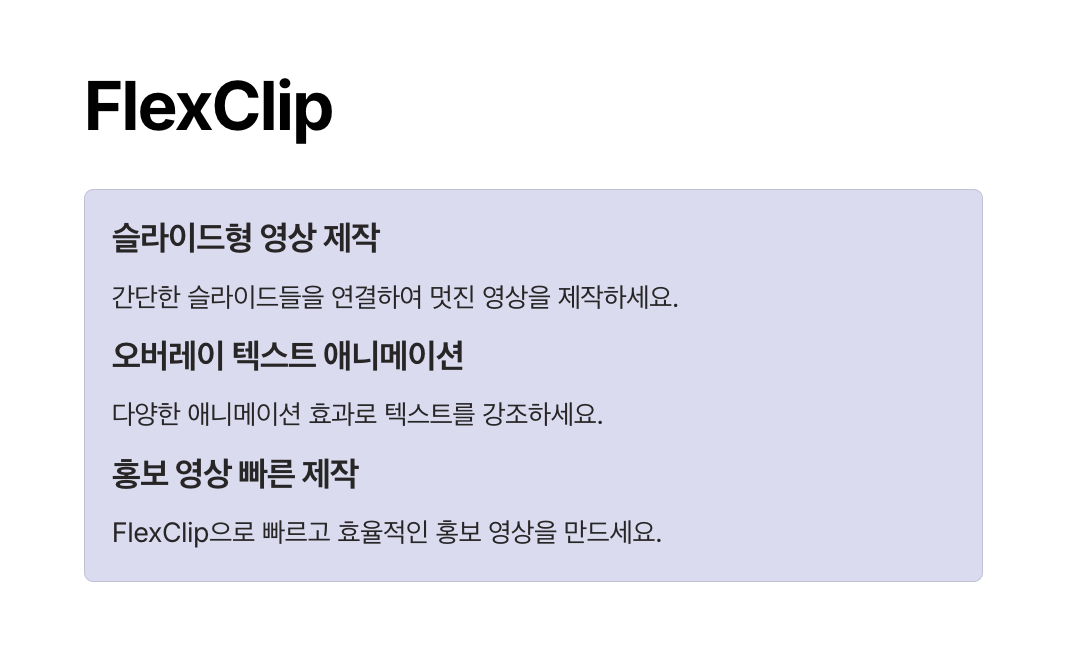 | 3. FlexClip 공식 사이트 | 간단한 슬라이드형 비디오와 유튜브 인트로 제작에 특화된 사이트로, 초보자도 애니메이션과 텍스트 효과를 쉽게 추가할 수 있습니다. |