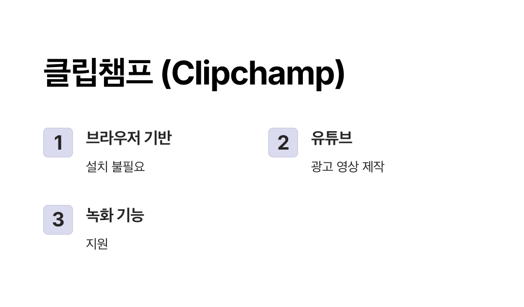 - 단점: 멀티 트랙 편집이나 고급 전환 효과에는 한계가 있습니다.