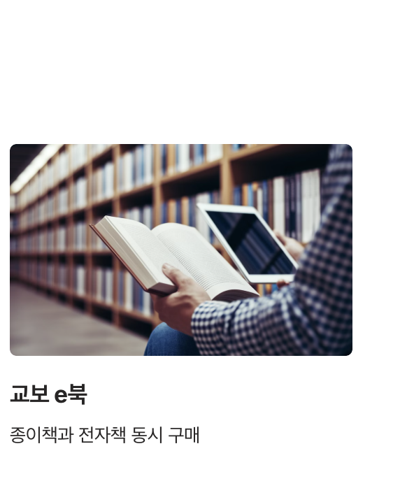 - 교보 e북: 종이책과 전자책의 동시 구매 및 교보문고 포인트 적립 혜택