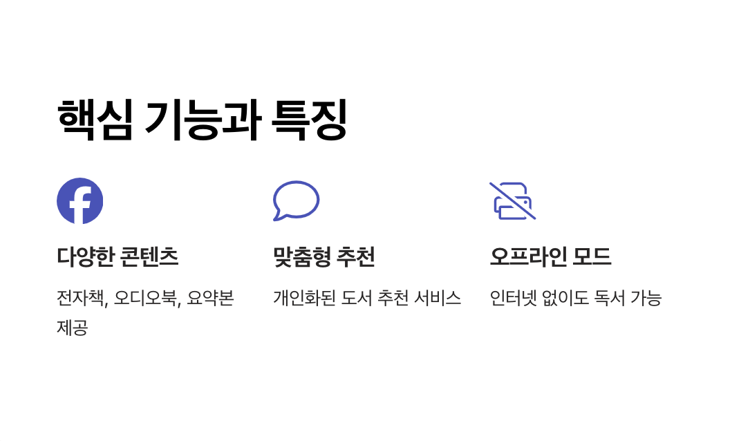 - 콘텐츠의 다양성: 전자책, 오디오북, 요약본 등 사용자의 필요에 맞는 포맷 제공