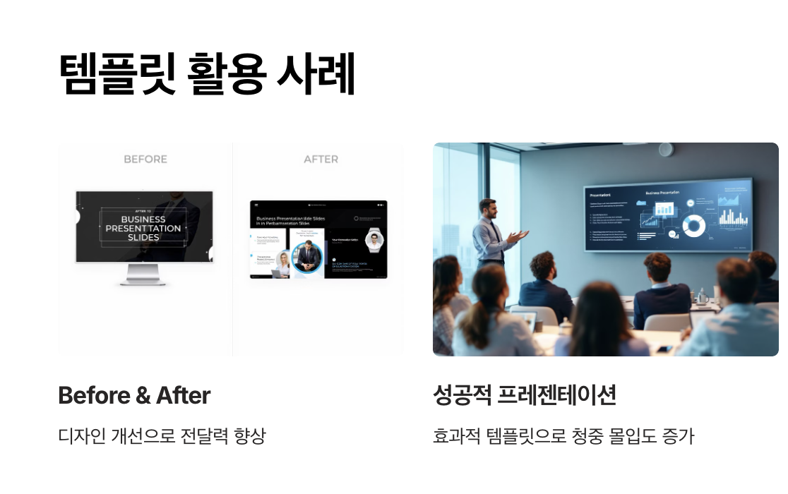 - 좋은 템플릿은 정보 전달력, 시각 집중도, 설득력을 모두 높여줍니다.