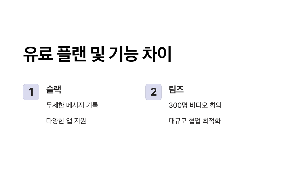 - 스타트업이나 중소기업: 무료 플랜으로 시작한 후 필요에 따라 슬랙의 유료 플랜으로 확장