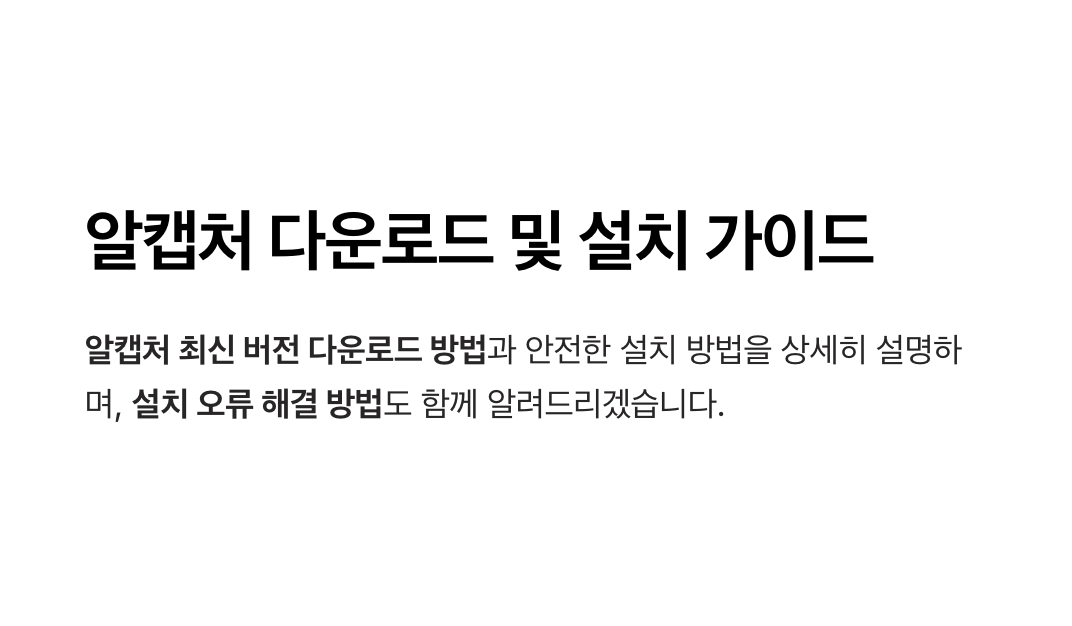 컴퓨터 화면을 캡처해야 할 때, 알캡처만큼 간편하고 강력한 프로그램은 드뭅니다. 알캡처 다운로드부터 설치까지 과정이 쉽지만, 초보자에게는 다소 어려울 수 있습니다. 이번 글에서는 알캡처 최신 버전 다운로드 방법과 안전한 설치 방법을 상세히 설명하며, 설치 오류 해결 방법도 함께 알려드리겠습니다.