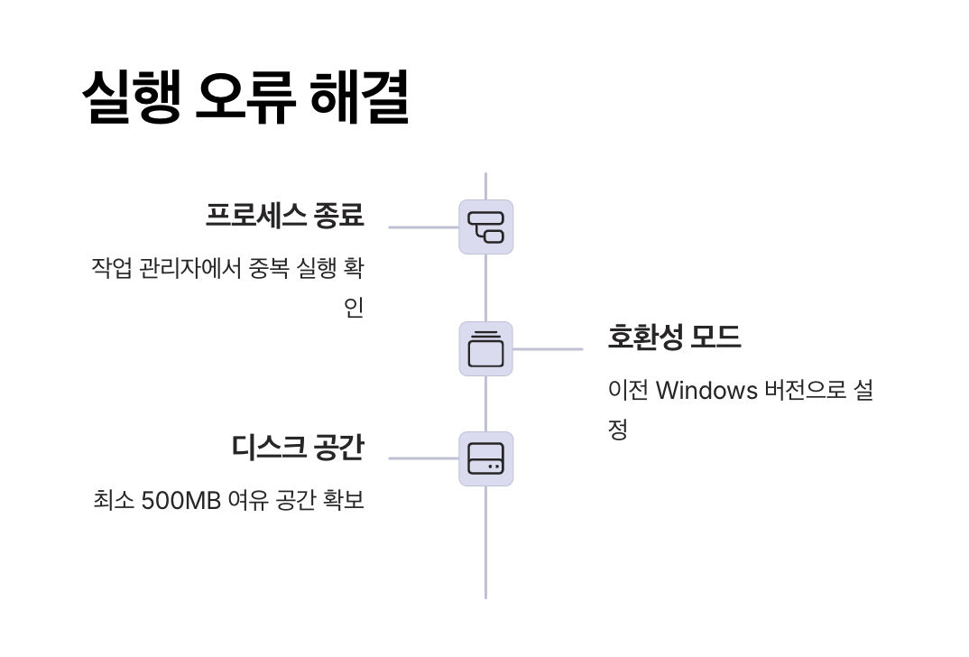 설치가 정상적으로 완료되었지만, 프로그램이 실행되지 않는 경우 설치 충돌, 호환성 문제, 백그라운드 실행 중 오류 등이 원인일 수 있습니다.