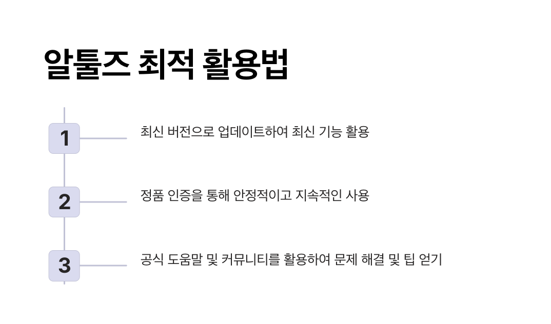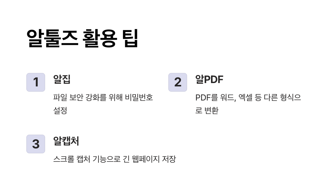 - 알툴즈는 지속적으로 보안 업데이트와 기능 개선이 이루어지므로, 항상 최신 버전을 유지하세요.