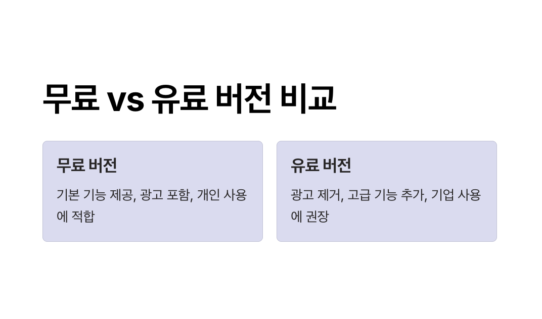 - 유료 버전에서는 광고가 제거되고, 추가 기능(예: 클라우드 저장소, 고급 편집 도구)을 제공합니다.