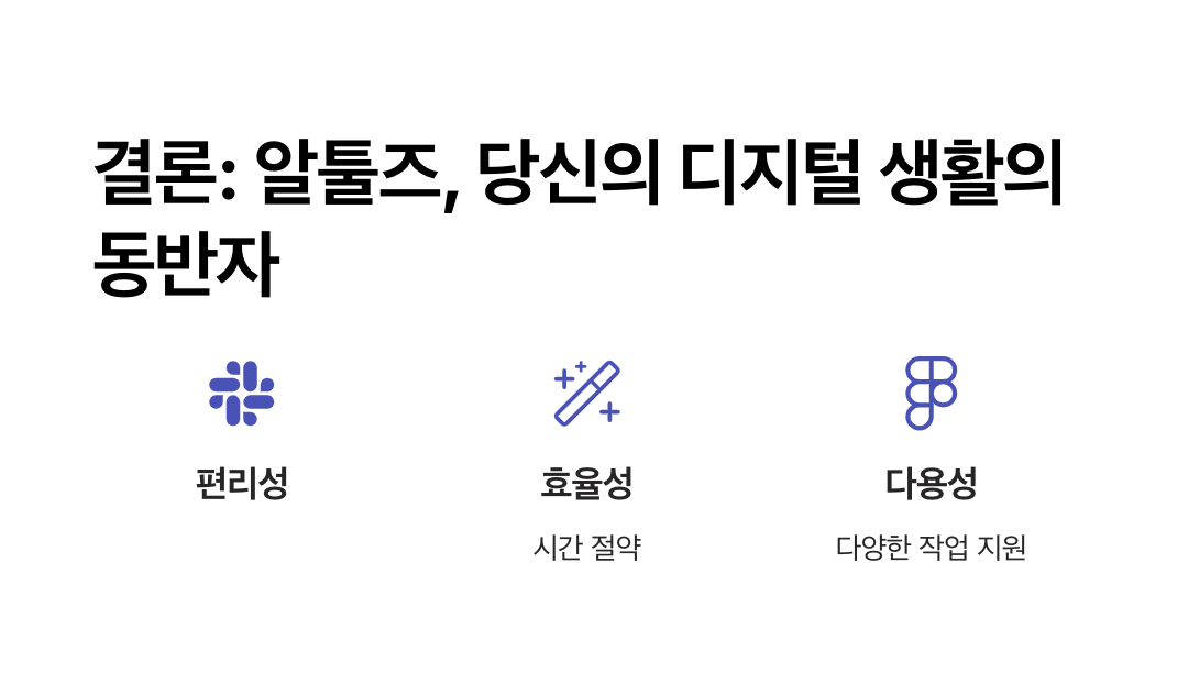 알툴즈는 단순히 유틸리티 도구를 제공하는 것을 넘어, 사용자들의 작업 효율을 높이고 시간을 절약하는 데 큰 도움을 줍니다.