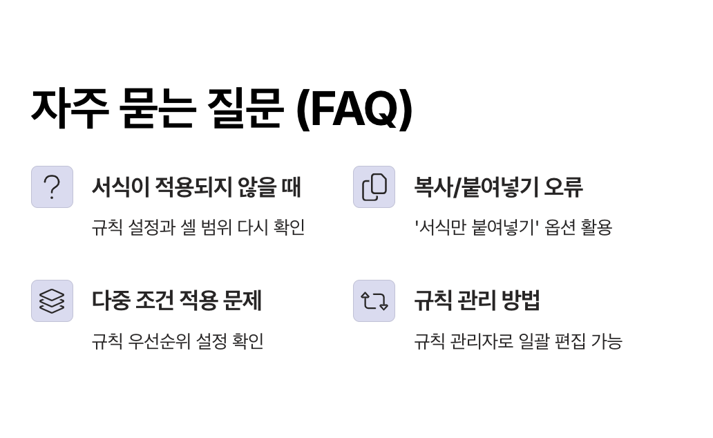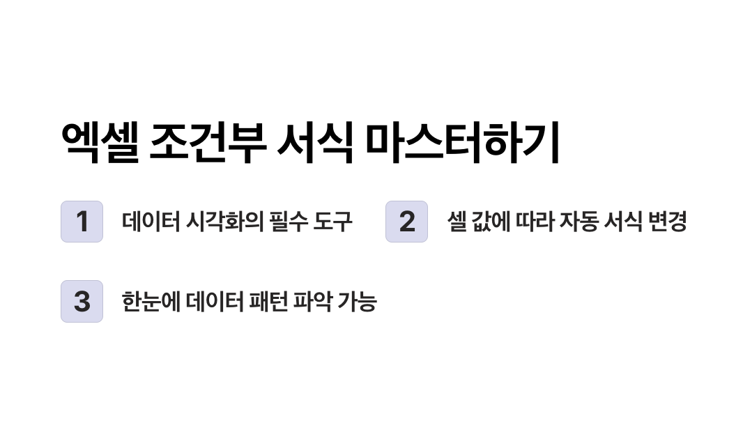 엑셀 조건부 서식은 데이터를 단순히 정리하는 것을 넘어서, 한눈에 정보를 파악하고 실수를 줄이는 방법입니다.
