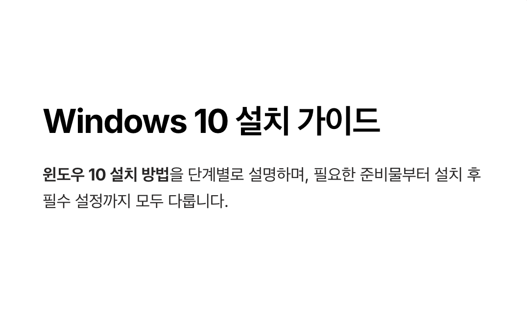 윈도우 10 설치가 처음이라면, 낯선 화면과 복잡한 과정이 부담스러울 수 있습니다. 이번 글에서는 준비물부터 설치 후 설정까지, 초보자도 쉽게 따라 할 수 있는 윈도우 10 설치 방법을 단계별로 설명합니다.