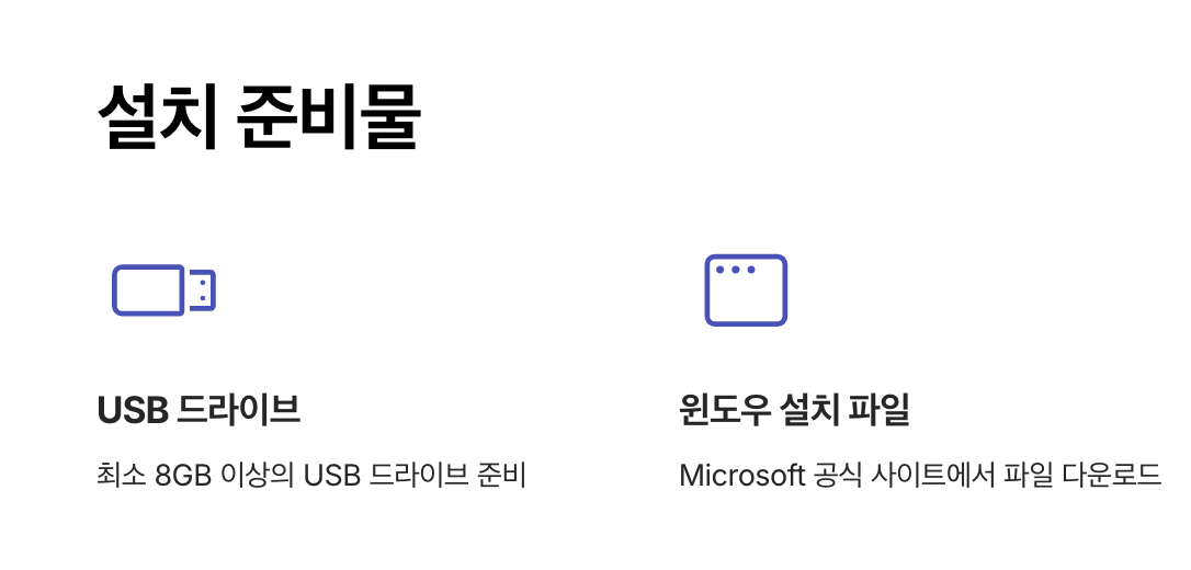 윈도우 10 설치를 시작하기 전에 필요한 준비물을 확인하고 준비하세요.