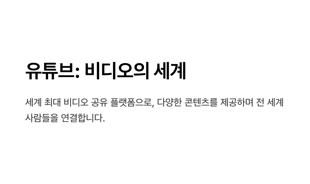 - 비즈니스: 유튜브는 중소기업부터 글로벌 브랜드까지 활용되는 광고와 마케팅의 핵심 플랫폼으로, 브랜드가 고객과 직접 소통할 수 있는 창구를 제공합니다.