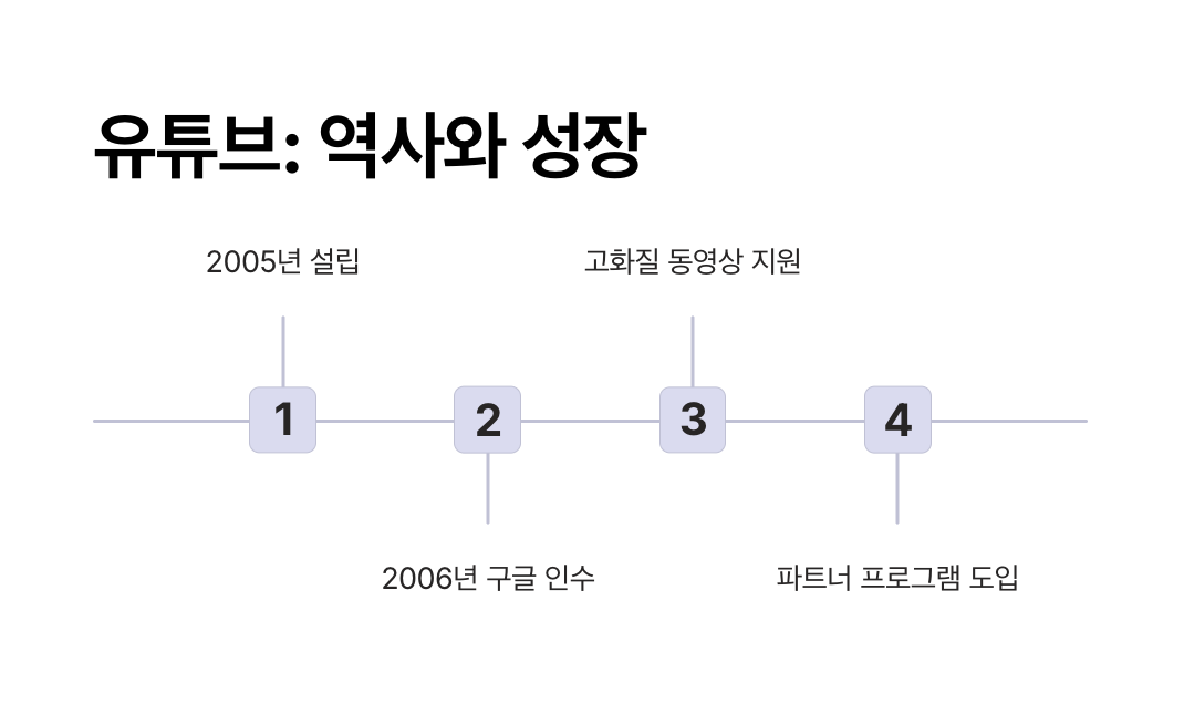 2006년 11월, 구글은 유튜브를 약 16억 5천만 달러에 인수하였습니다. 이후 유튜브는 고화질 동영상 지원, 파트너 프로그램 도입, 실시간 스트리밍 기능 추가 등 다양한 기능을 통해 빠르게 성장하였습니다.