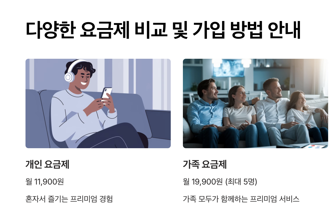 - 가족 요금제: 월 19,900원 (최대 5명까지 공유 가능)