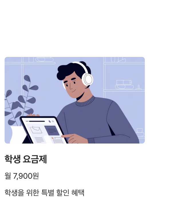 - 학생 요금제: 월 7,900원 (대학생 인증 필요)