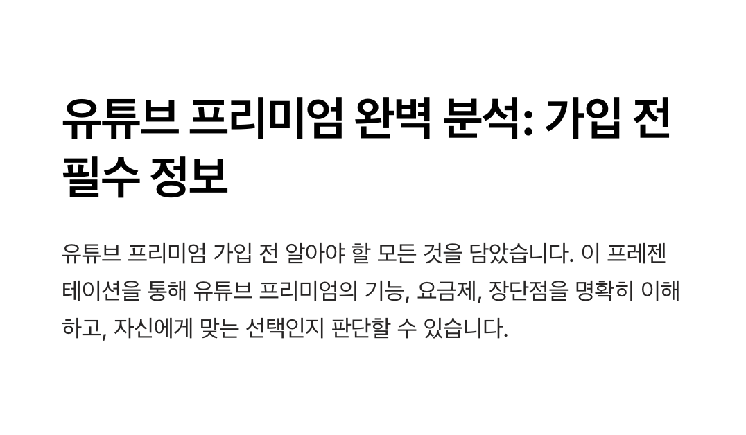따라서 유튜브 프리미엄 가입을 고민하는 분들은 1개월 무료 체험을 활용하여 직접 사용해 본 후 결정하는 것이 가장 좋은 방법입니다. 본인의 사용 패턴을 고려하여 정말 필요한 서비스인지 신중하게 판단해 보시길 바랍니다.