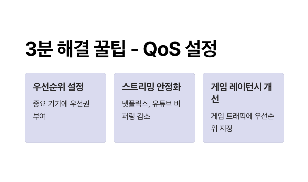 QoS(Quality of Service)는 공유기에서 특정 기기의 인터넷 속도를 우선적으로 배정하는 기능입니다.
