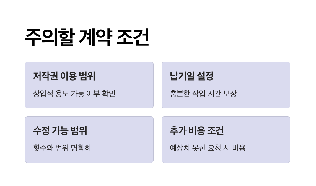 수정 범위도 중요합니다. 단순 색상 수정인지, 전체 재작업까지 포함하는지 사전에 조율해야 합니다.