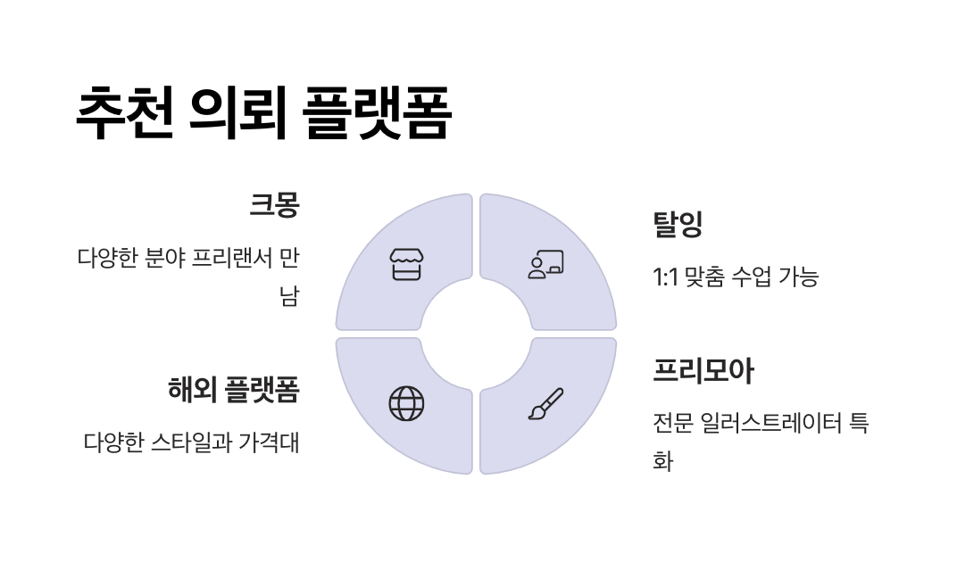 크몽 일러스트, 탈잉, 프리모아 같은 플랫폼 정보부터, 포트폴리오 보는 법, 의뢰 절차까지 한 번에 정리해 드리겠습니다.