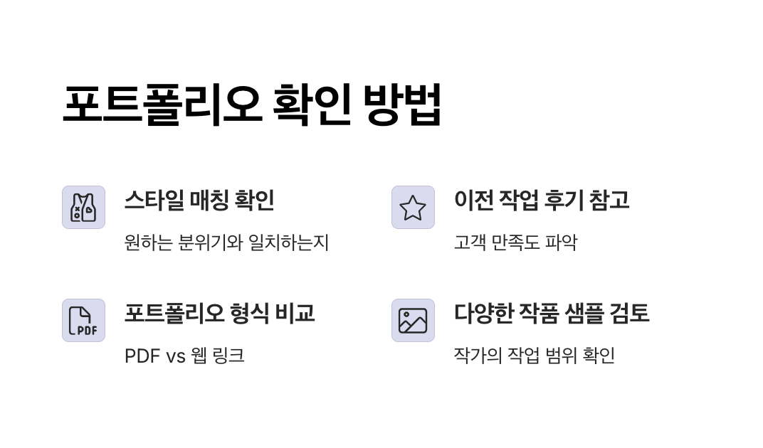 포트폴리오를 볼 때는 '그림이 예쁘다'보다 '내가 원하는 스타일인가?'를 먼저 확인해야 합니다.