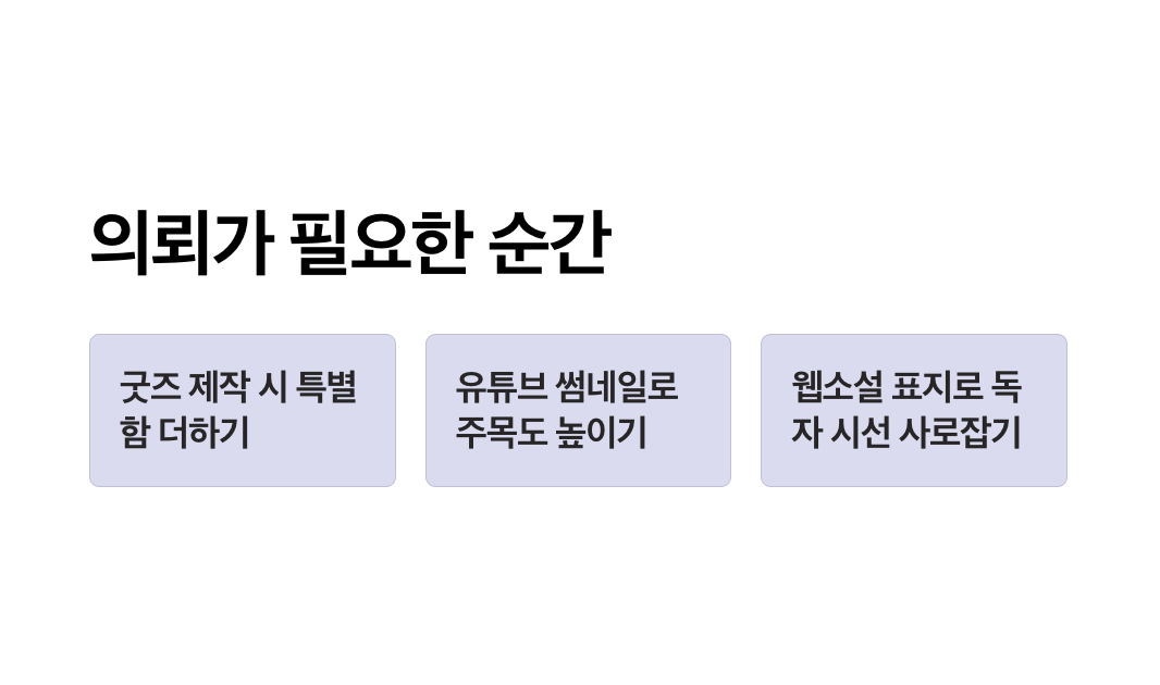 - 어떤 용도인지 (굿즈/썸네일/표지 등)