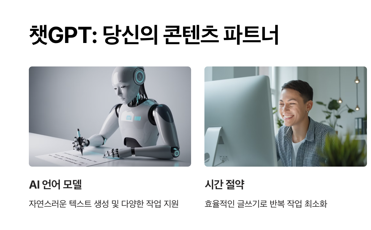 - "챗GPT로 블로그 콘텐츠를 쉽게 작성하고, SEO 최적화로 검색 순위를 높이는 방법을 확인해보세요."