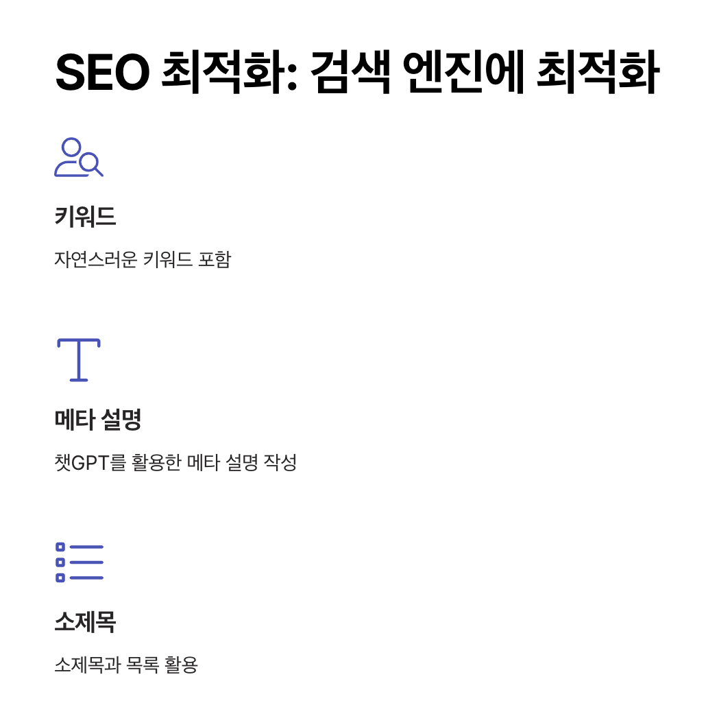 - SEO 최적화: 키워드 밀도를 조절하고 검색에 잘 노출될 수 있는 구조를 제공합니다.