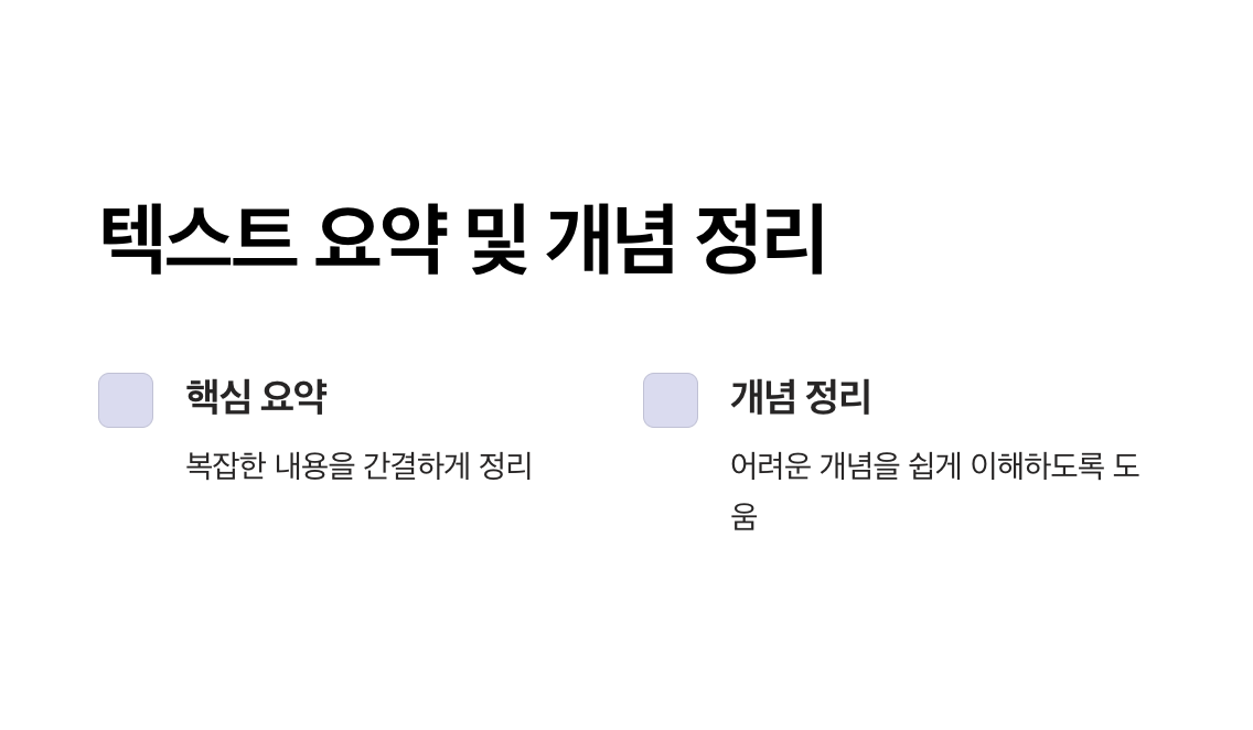 - 자동화된 요약: 긴 학습 자료를 간단히 요약하여 시간 절약 가능.