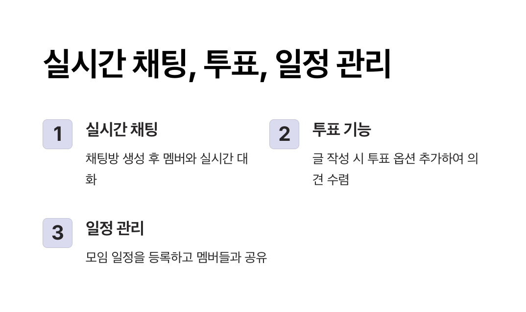 실시간 채팅, 투표, 일정 관리