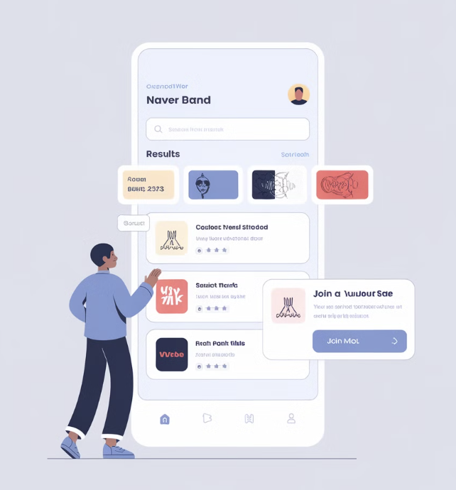 - 관심 분야(예: 등산, 요리, 독서)에 맞는 밴드를 찾아볼 수 있습니다.