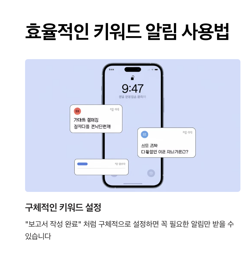- "세일", "이벤트", "약속" 같은 키워드를 설정해 개인적으로 중요한 정보를 놓치지 않습니다.