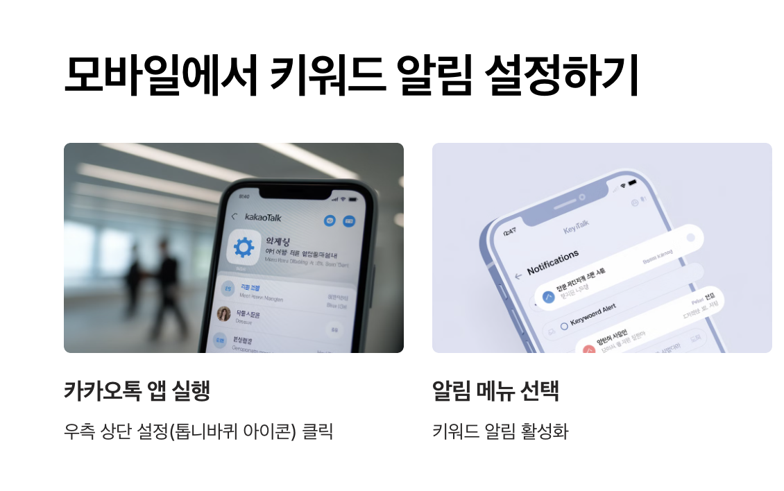 카카오톡 키워드 알림 기능은 특정 단어가 포함된 메시지가 도착하면 즉시 알림을 제공하는 스마트한 도구입니다. 이 기능을 통해 업무와 일상에서 메시지를 더 효율적으로 관리할 수 있습니다. 이번 글에서는 키워드 알림의 설정 방법과 활용 팁을 간단하고 명확하게 설명해 드리겠습니다.