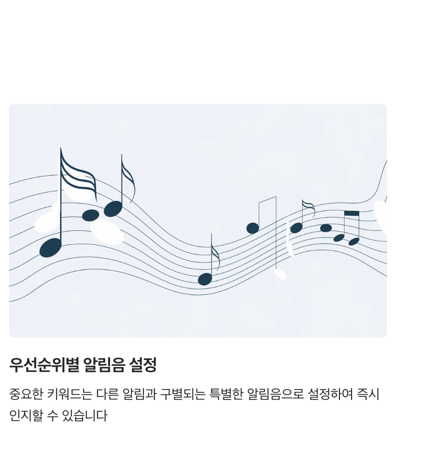 - 알림음을 키워드별로 다르게 설정해 중요도에 따라 구분 가능.