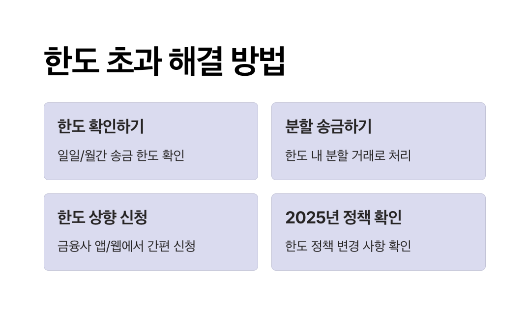 - 필요 시 소액 분할 송금 또는 한도 상향 신청