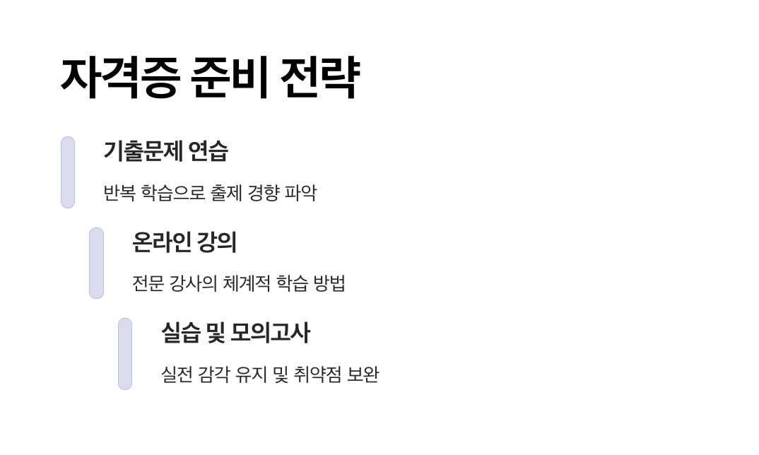 - 준비 방법: 기출문제 연습, 모의고사 반복