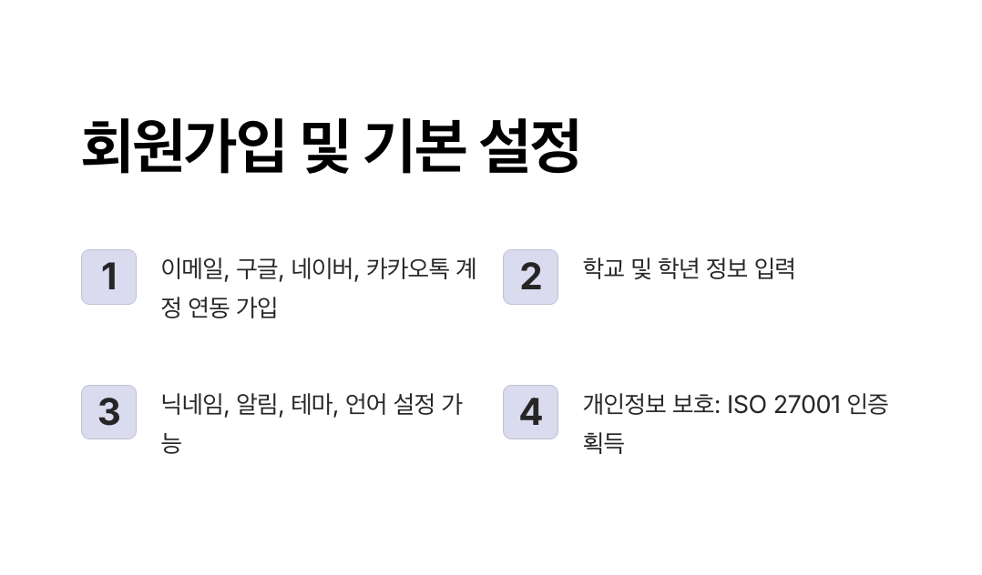 콴다를 사용하기 위해서는 먼저 회원가입이 필요합니다. 가입 후에는 개인 설정을 통해 학습 환경을 최적화할 수 있습니다.