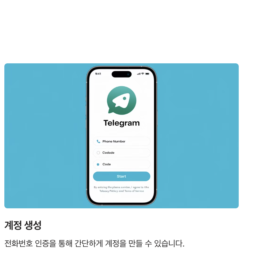 - 텔레그램은 전화번호 기반 인증을 사용합니다.