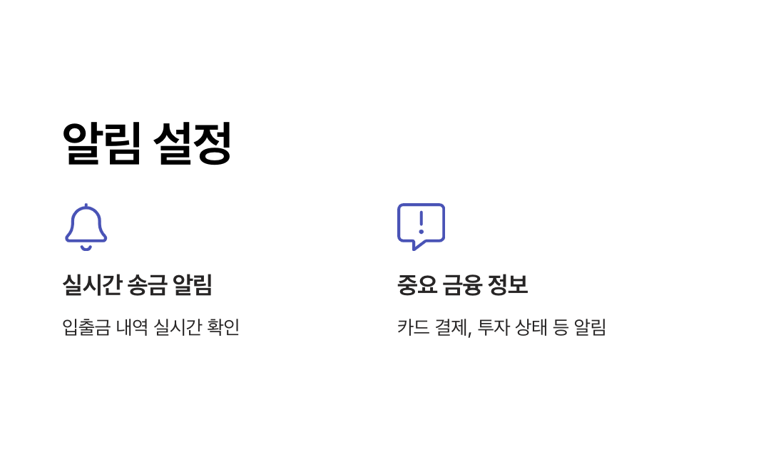 - 중요 금융 정보 알림: 카드 결제, 투자 상태 알림 등 중요한 정보를 빠르게 확인.