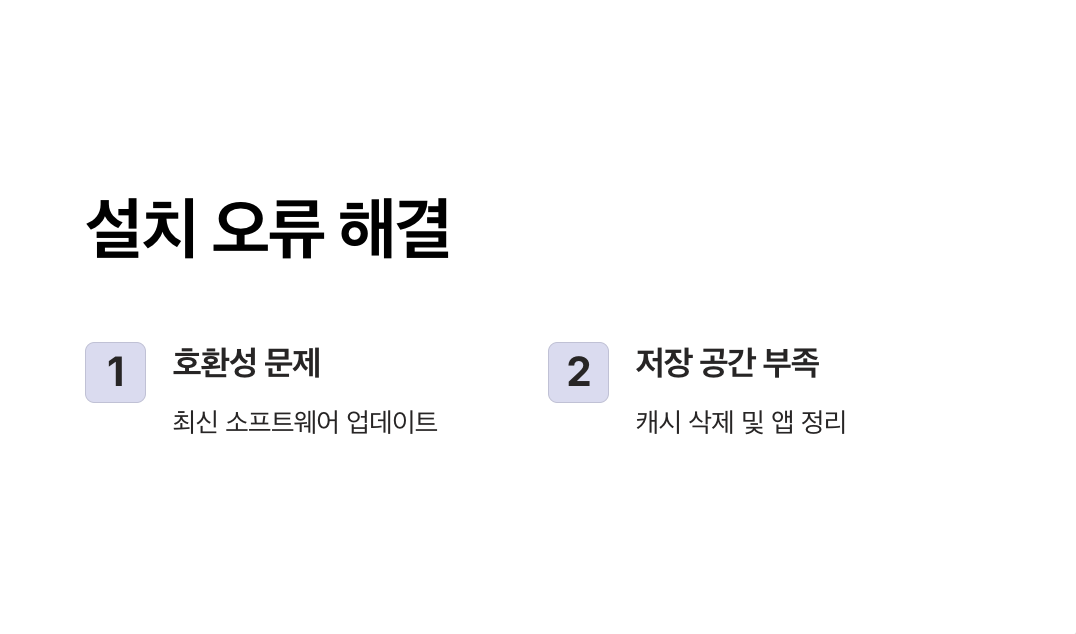 - 저장 공간 확인: 설치 전 기기의 저장 공간을 확인하세요. 최소 50MB의 여유 공간이 필요합니다.
