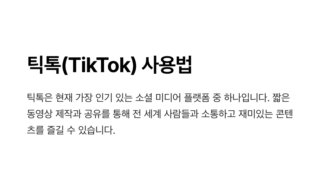 틱톡은 단순한 동영상 플랫폼을 넘어, 전 세계 사람들과 자신의 창의적인 아이디어를 공유할 수 있는 공간입니다. 초보자라도 간단한 사용법을 익히고, 첫 영상을 업로드하면서 틱톡의 매력을 충분히 느낄 수 있습니다.