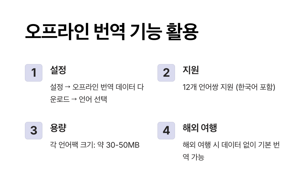 오프라인 번역 기능은 해외 여행, 인터넷이 안 되는 지역에서 유용하게 활용할 수 있습니다.